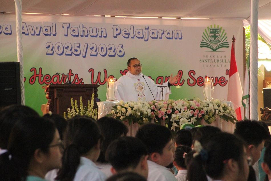 22 July 2025, Misa awal tahun pelajaran 2025-2026 Sekolah Santa Ursula Jakarta, di Lapangan SD dan Aula SD . Merupakan ujud syukur untuk pembelajaran selama satu tahun . Misa di ikuti oleh seluruh komunitas sekolah Santa Ursula Jakarta dan perwakilan orangtua murid.